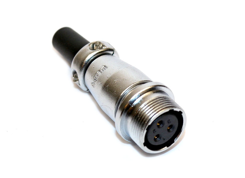 Weipu Steckverbinder, weiblich, 3 Pole, rund geschraubt, Innengewindet für Kabel-Querschnitt von 4,0-6,5mm², vergoldete Lötkontakte.