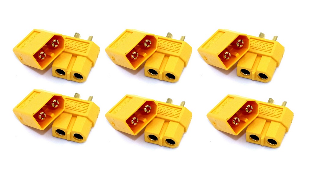 XT60 Stecker/Buchsengehäuse , 3.5mm vergoldet, lötbar, Hochstrom-Verbindung, 6 Paar/Pckg. Gelbfarbig