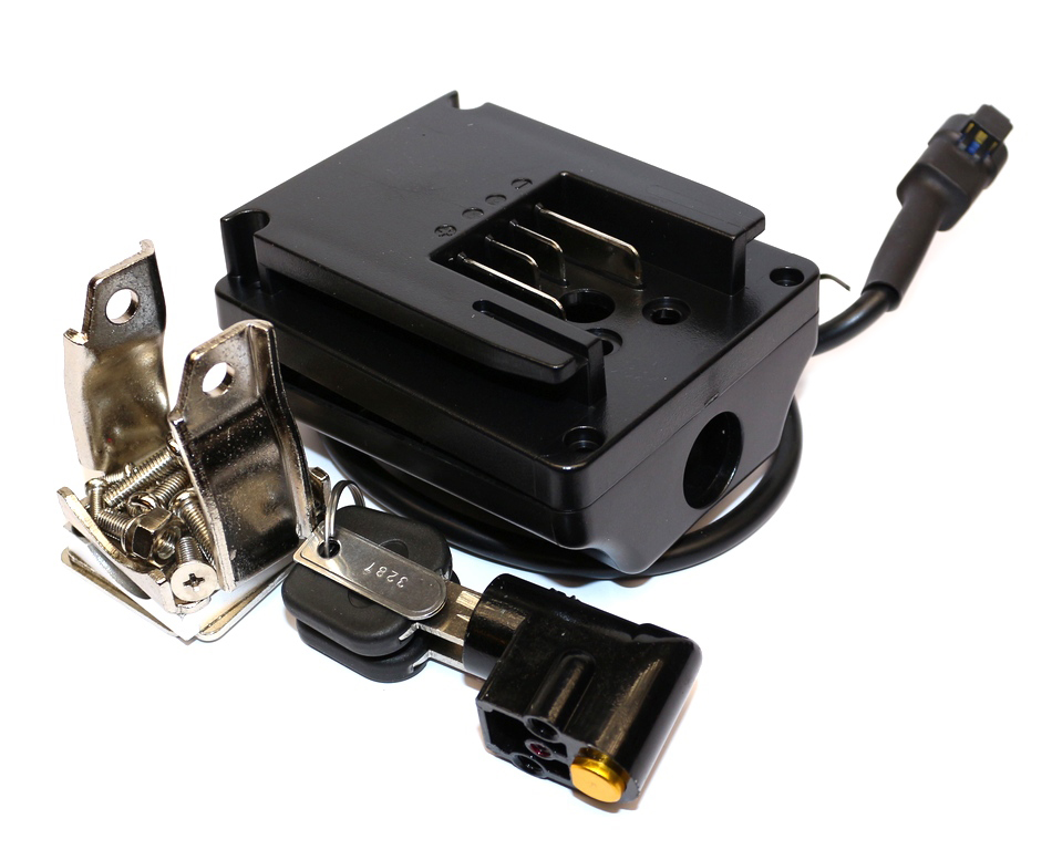 36V Akku Schellenhalter für Montage auf Sattel, Gepäckträger und Fahrradrahme inkl. Kabel, Adapter, Stecker und Schloß