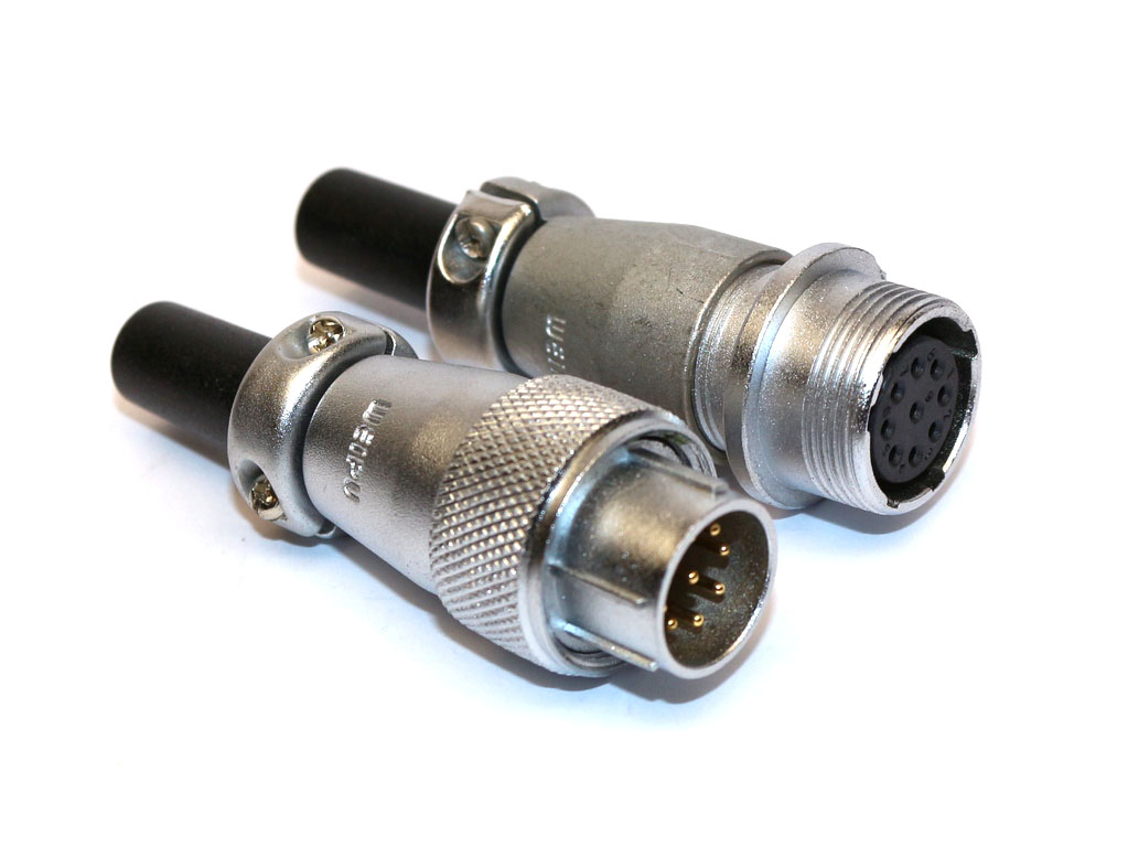Weipu Steckverbinder, männlich/weiblich, 9 Pole in Paar, rund geschraubt, Innengewindet für Kabel-Querschnitt von 4,0-6,5mm², vergoldete Lötkontakte. Spezial für BIFS Antriebssystem.